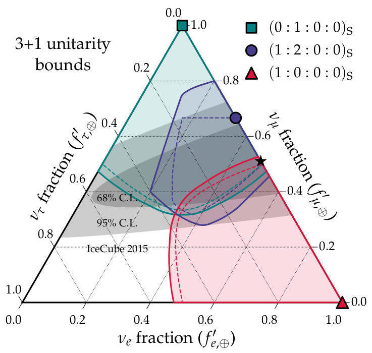 If the three active neutrinos mix with a sterile one, i.e., in 3+1 scenarios, they may modify the flavor composition of high-energy astrophysical neutrinos. We analytically derived boundaries in flavor space to avoid having to sample over unknown mixing and help boost searches for new physics (we provided them in nice downloadable data tables, too):