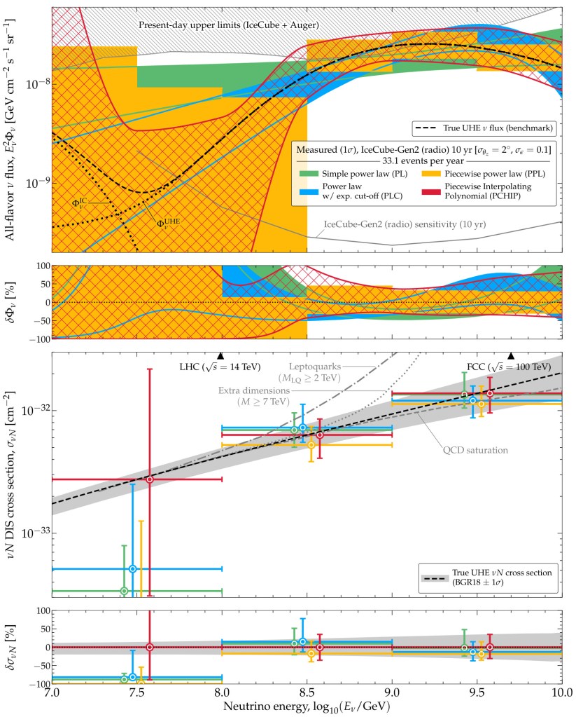 In a new paper led by Víctor Valera and co-authored by Olga Mena and I, we have shown that upcoming UHE neutrinos telescopes should be able to jointly measure the UHE neutrino spectrum and cross section, including its energy dependence, without assuming prior knowledge of either: