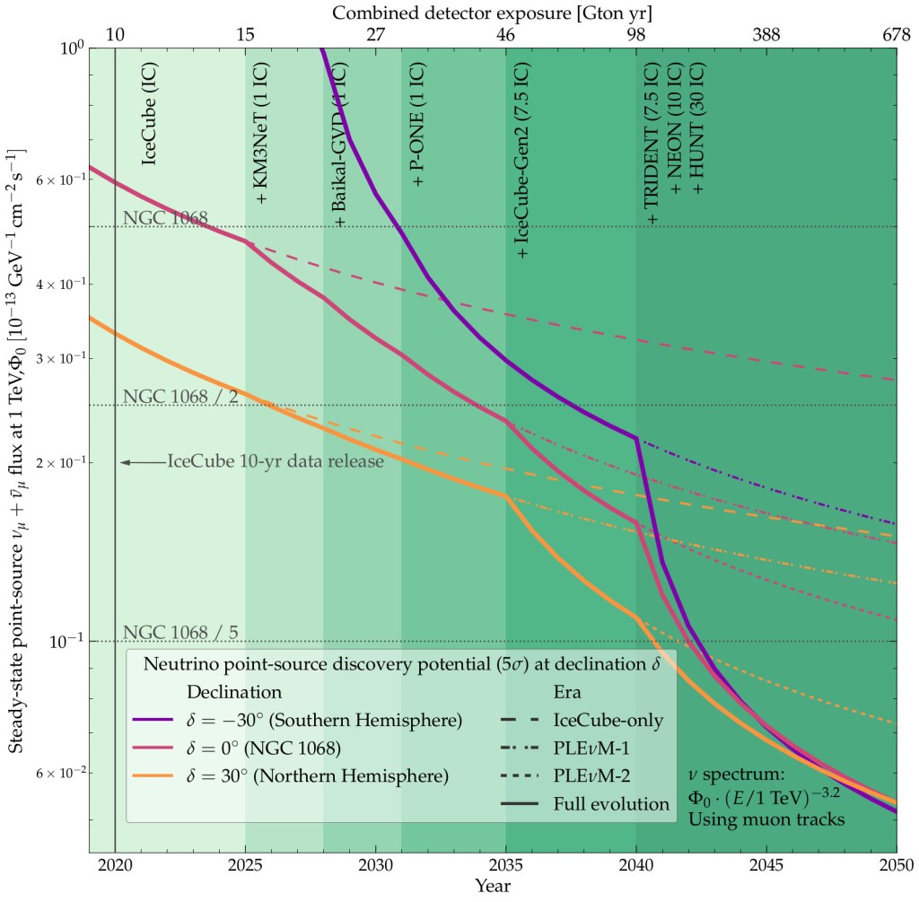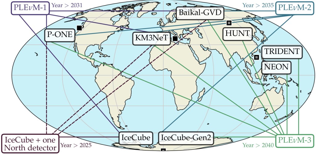 In a new paper, led by Lisa Schumacher, we show that, in the next 10-20 years, IceCube + Baikal-GVD, KM3NeT, IceCube-Gen2, P-ONE, TRIDENT, NEON, & HUNT, taken together in PLEnuM, could allow us to make global high-energy neutrino monitoring a reality. Together, they will increase the global rate of neutrino detection by up to 30 times and continuously monitor the entire sky.